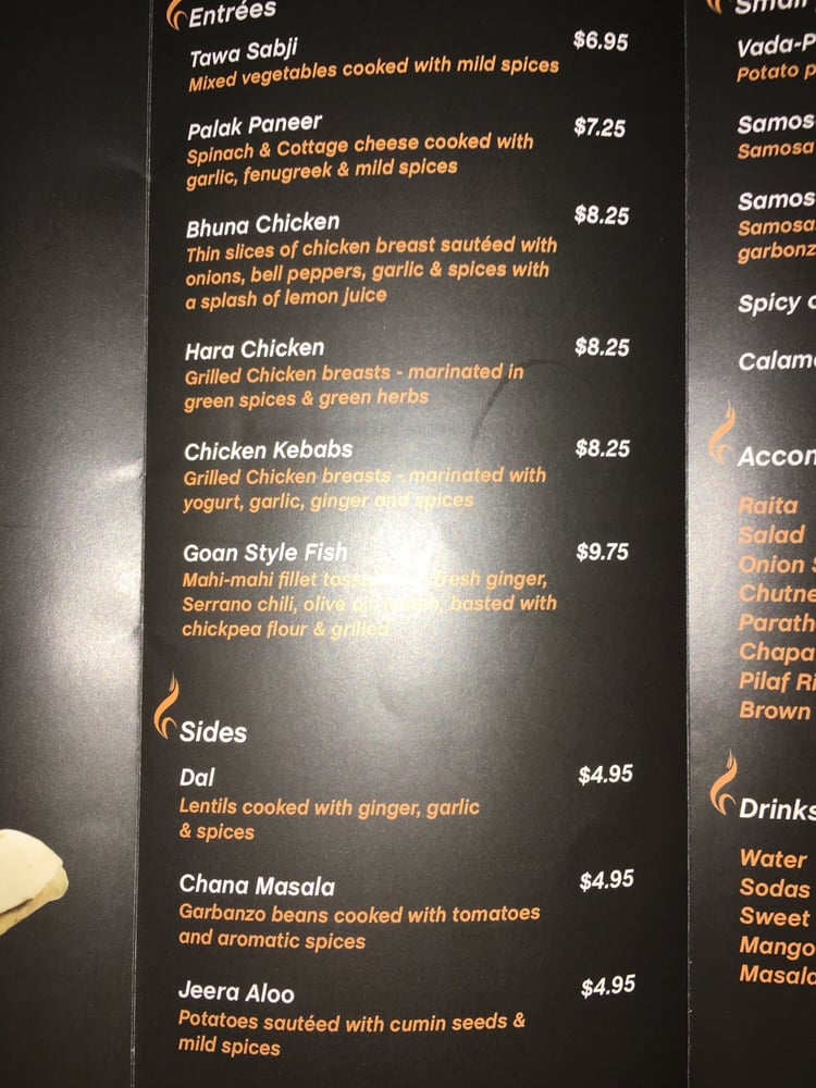 Bollywood Zaika’s menu offers a delightful selection of appetizers, from savory Veg Samosas to spicy Chicken Wings. The Paneer Kathi Roll is a standout, avec marinated cheese cubes nestled in a paratha that's bursting with flavor. For the heart of your meal, try their rich Butter Chicken or Chana Masala, both richly seasoned and creamy.